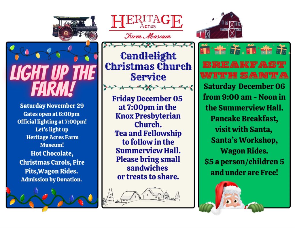 Heritage Acres Farm Museum is open May Long Weekend to September 15th and by appointment. Open for events year-round.